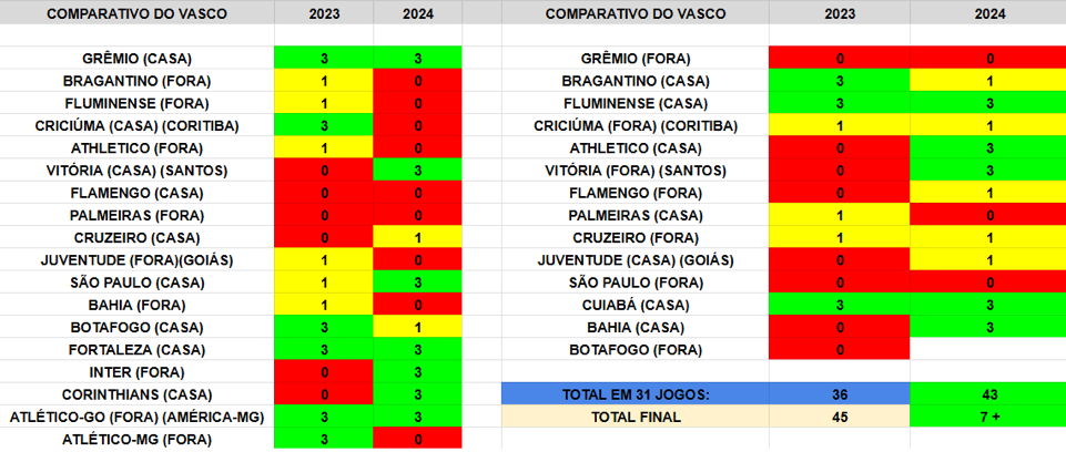 Em comparação com a mesma rodada no ano passado, em que o Vasco lutou até o última jogo contra o rebaixamento para a segunda divisão, o Cruz-maltino tem sete pontos a mais obtidos. Com isso, o projeto do clube que antes era da permanência agora é buscar uma vaga na Copa Libertadores.