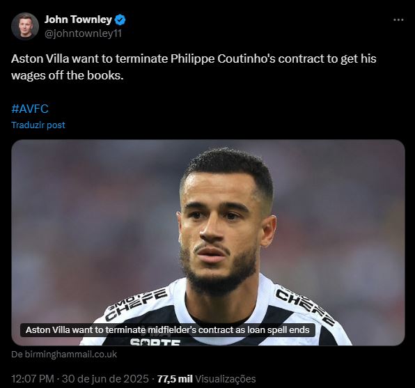 “O Aston Villa quer rescindir o contrato de Philippe Coutinho para tirar seus salários da folha de pagamento”.