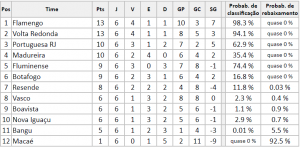Segundo o site ”Chance de Gol”, após o empate contra o Tricolor Suburbano, a chance de classificação do Vasco na Taça Guanabara caiu para 2,3%.