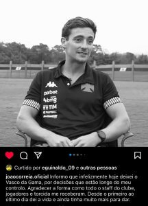 “Informo que infelizmente hoje deixei o Vasco da Gama, por decisões que estão longe do meu controlo. Agradecer a forma como todo o staff do clube, jogadores e torcida me receberam. Desde o primeiro ao último dia dei a vida e ainda tinha muito mais para dar.”