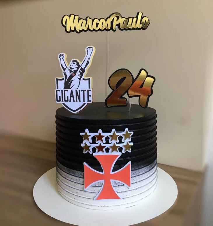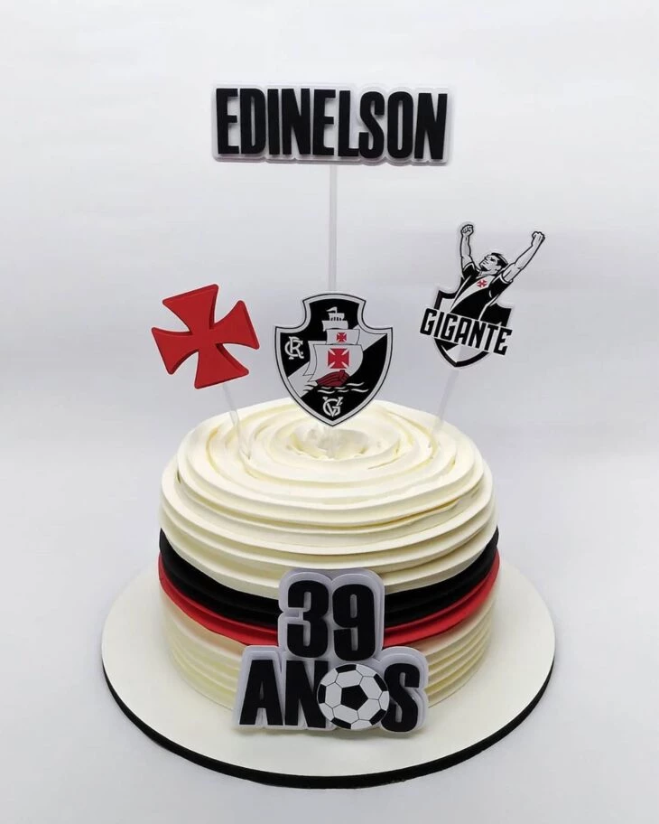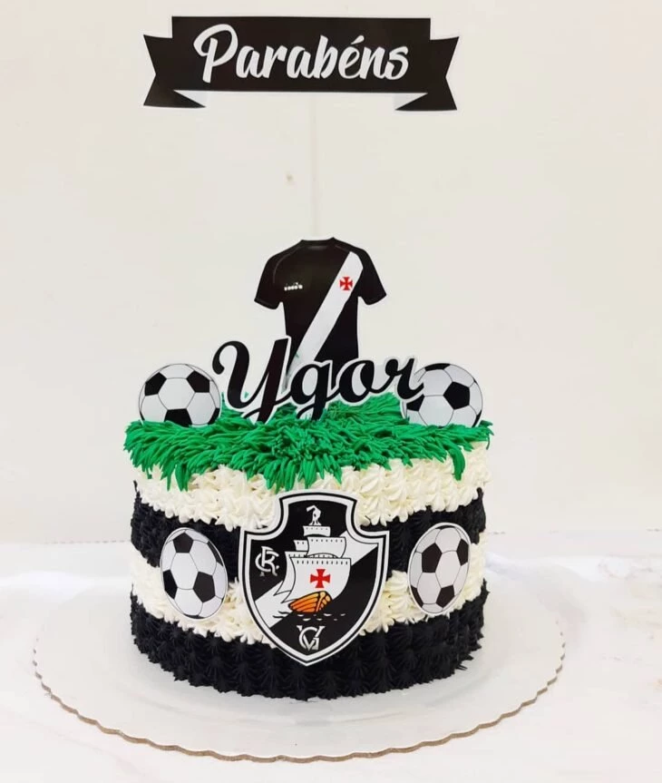 O bolo do Vasco é a escolha perfeita para os torcedores apaixonados que querem celebrar uma festa temática com estilo e orgulho do Gigante da Colina. As cores tradicionais do clube – preto, branco e vermelho – são ideais para compor uma decoração vibrante, e o toque dourado pode simbolizar as conquistas e vitórias do time ao longo da sua história.