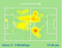 Segundo dados do Sofascore, Bruno Gomes ganhou nove duelos no chão e um pelo alto no clássico. O volante desarmou cinco vezes na partida e não cometeu nenhuma falta. Além disso, o jogador ainda deu três cortes e interceptou uma jogada. Confira o mapa de calor de Bruno no jogo contra o Botafogo.