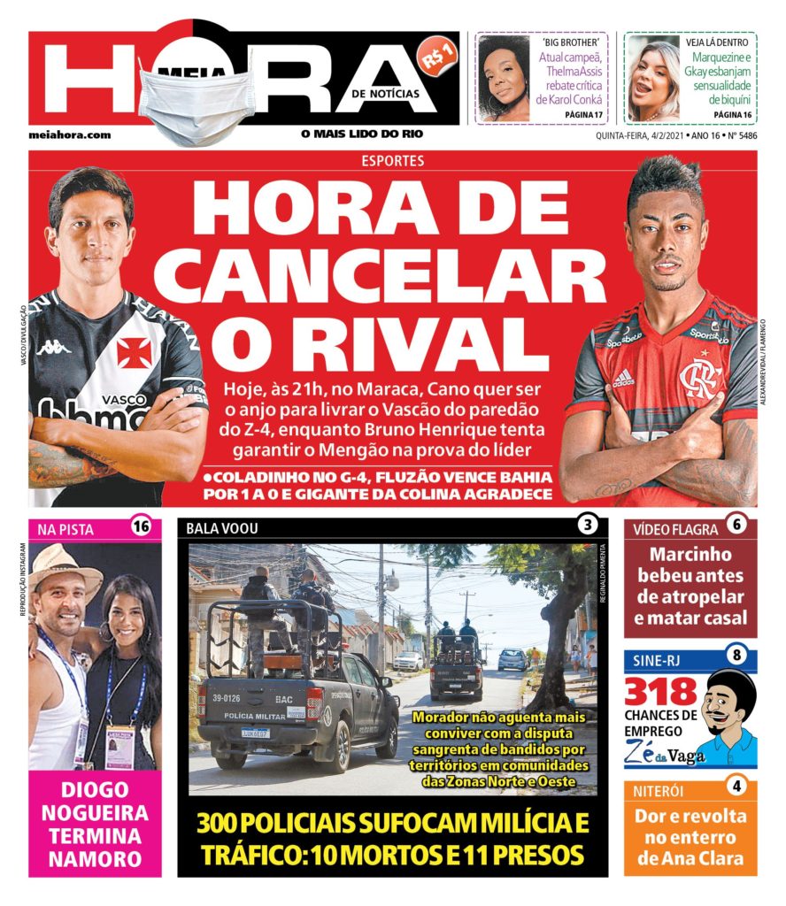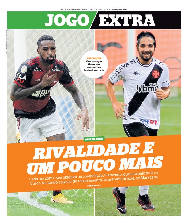 Em jogo válido pelo Campeonato Brasileiro, o Vasco da Gama vai enfrentar o Flamengo nesta quinta-feira (04), às 21h00, no Maracanã. As capas dos jornais destacaram o duelo.