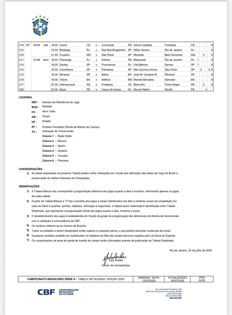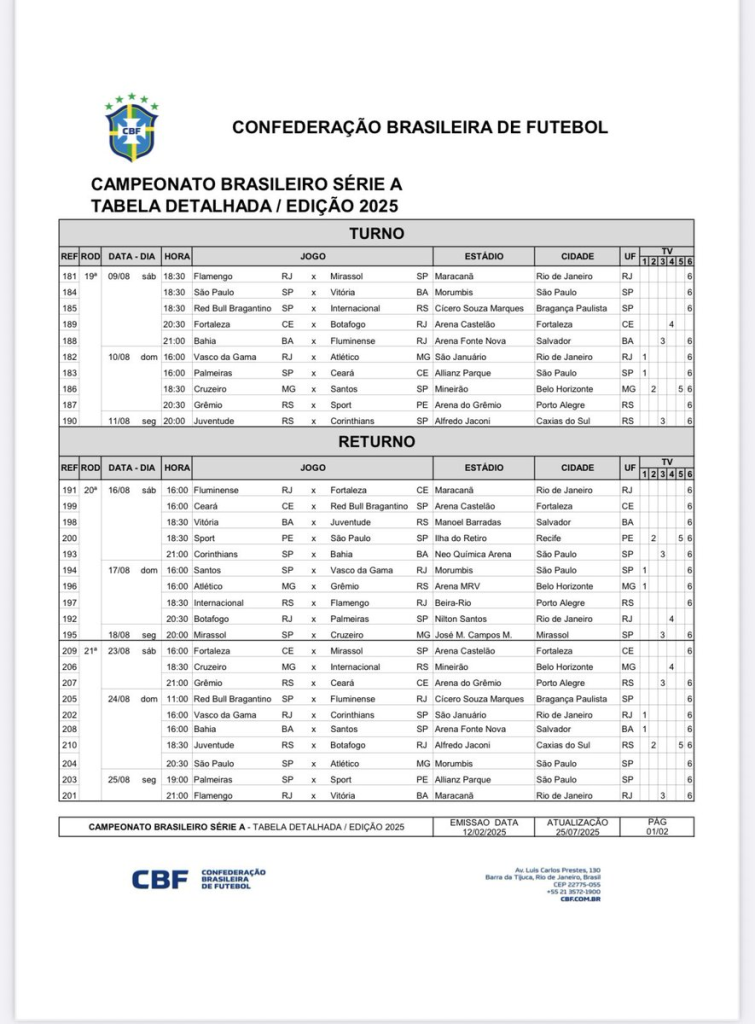 Na noite desta última sexta-feira, dia 25 de Julho, a CBF divulgou as datas e horários dos jogos do Vasco nas próximas rodadas do Campeonato Brasileiro. Além disso, a entidade máxima do futebol Brasileiro alterou o dia e o horário da partida de volta da Copa do Brasil.