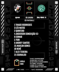 Assim, confira a escalação oficial do Vasco para o duelo contra o Guarani: