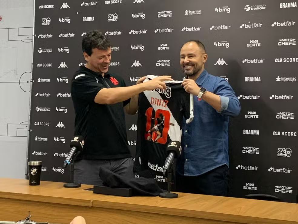 Fernando Diniz e Amodeo em apresentação do Vasco — Foto: Tébaro Schmidt