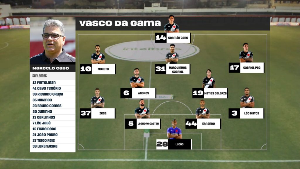 Outra mudança foi a saída de Bruno Gomes do meio campo, que será formado por Andrey, Galarza e Marquinho Gabriel.