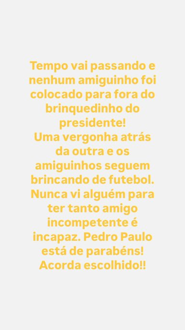 Em uma postagem carregada de ironia, Euriquinho afirmou que “os amiguinhos seguem brincando de futebol” e que o clube acumula “uma vergonha atrás da outra”, sem que nenhuma medida seja tomada. A mensagem, claramente direcionada ao presidente do clube, cobra atitudes mais firmes e mudanças urgentes na gestão do futebol cruzmaltino.