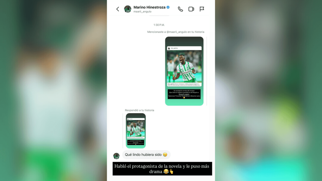 Ao comentar a situação, Yoana Don indicou o fim da disputa pelo jogador. “Se terminou a novela do verão. Que lindo teria ficado o de Boquita em Hinestroza. Opiniões? Obrigada, Nacional, por esticar tanto”, escreveu a jornalista.