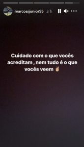 Além das conversas, Marcos Jr. também postou uma mensagem aos seus seguidores onde pedia para que tomassem cuidado com o que acreditam e com o que veem. Após o ocorrido, o jogador não se pronunciou mais. A brincadeira pareceu não ter irritado o meia, que riu no início da conversa, quando se referiu ao print divulgado. Mas a produção de uma conversa fake poderia dar problemas até na justiça.