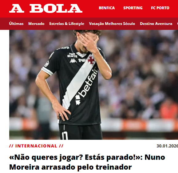 O desconforto de Nuno Moreira foi agravado pela repercussão midiática. A “bronca” não virou notícia apenas no Brasil, mas estampou os principais jornais esportivos de Portugal. O meia recebeu diversas mensagens de conhecidos perguntando sobre o ocorrido.