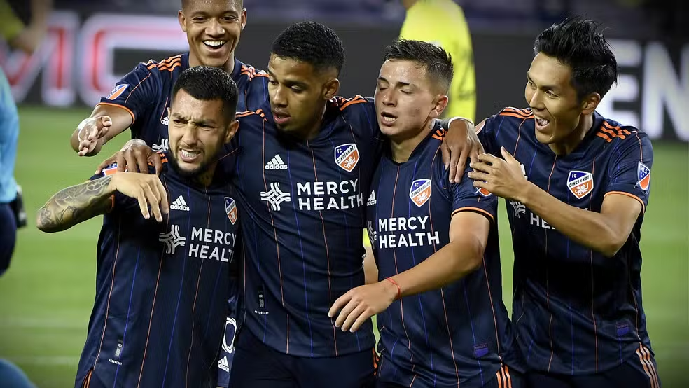 Brenner comemora gol com companheiros de FC Cincinnati — Foto: Reprodução/Twitter FC Cincinnati