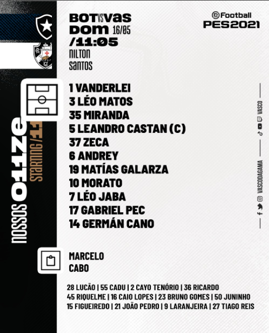 <span data-keep-original-tag="false" data-original-attrs="{"style":""}">O Vasco divulgou oficialmente, através de sua conta oficial do Twitter, a escalação que vai enfrentar o Botafogo, neste domingo, pela final da Taça Rio.</span> <img class="aligncenter wp-image-11444 size-full" src="http://paponacolina.com.br/wp-content/uploads/2021/05/escalacaooficial.png" alt="" width="533" height="659" />