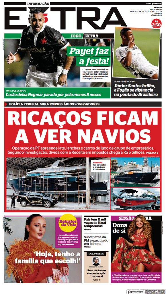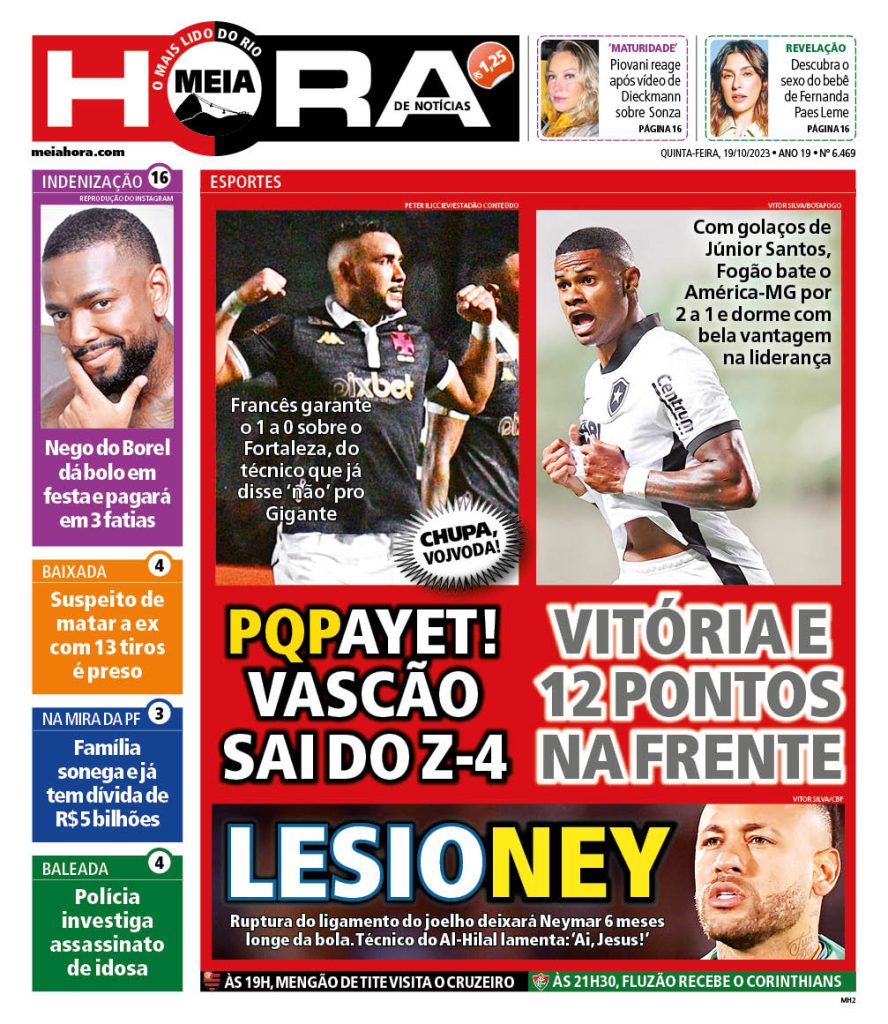 Capas dos jornais após Vasco 1 x 0 Fortaleza: