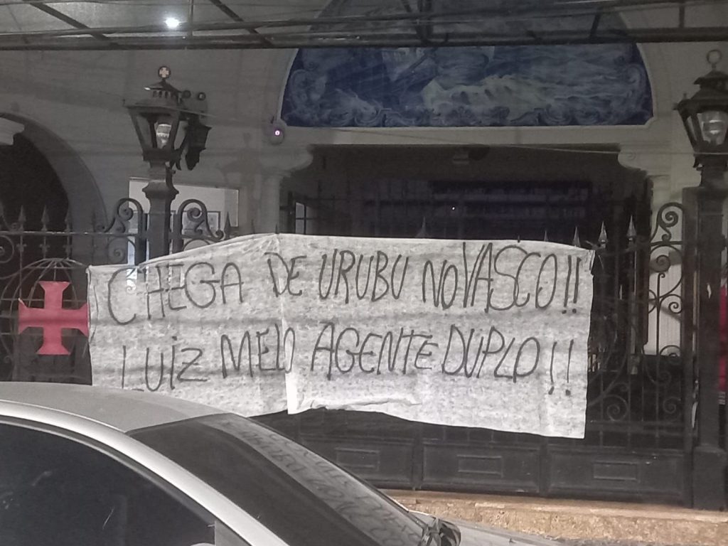 – Chega de urubu no Vasco! Luiz Mello, agente duplo! – protestam os torcedores