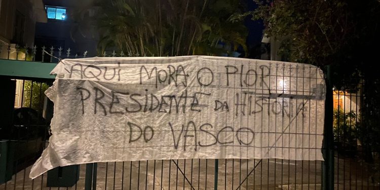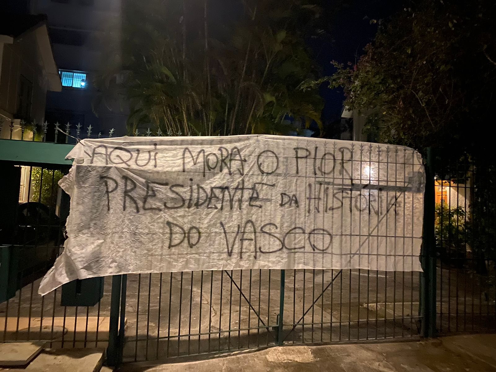 – Aqui mora o pior presidente da história do Vasco. – diz a faixa presente na casa de Jorge Salgado