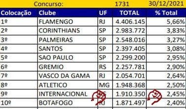 O Governo Federal espera que com a alteração nos valores, os clubes façam mais divulgação da loteria. Veja abaixo o valor que o Vasco recebeu em 2021.