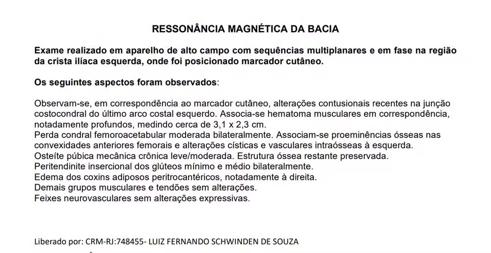 Resultado do exame de imagem feito na bacia de Léo Jardim, goleiro do Vasco — Foto: Divulgação / Vasco
