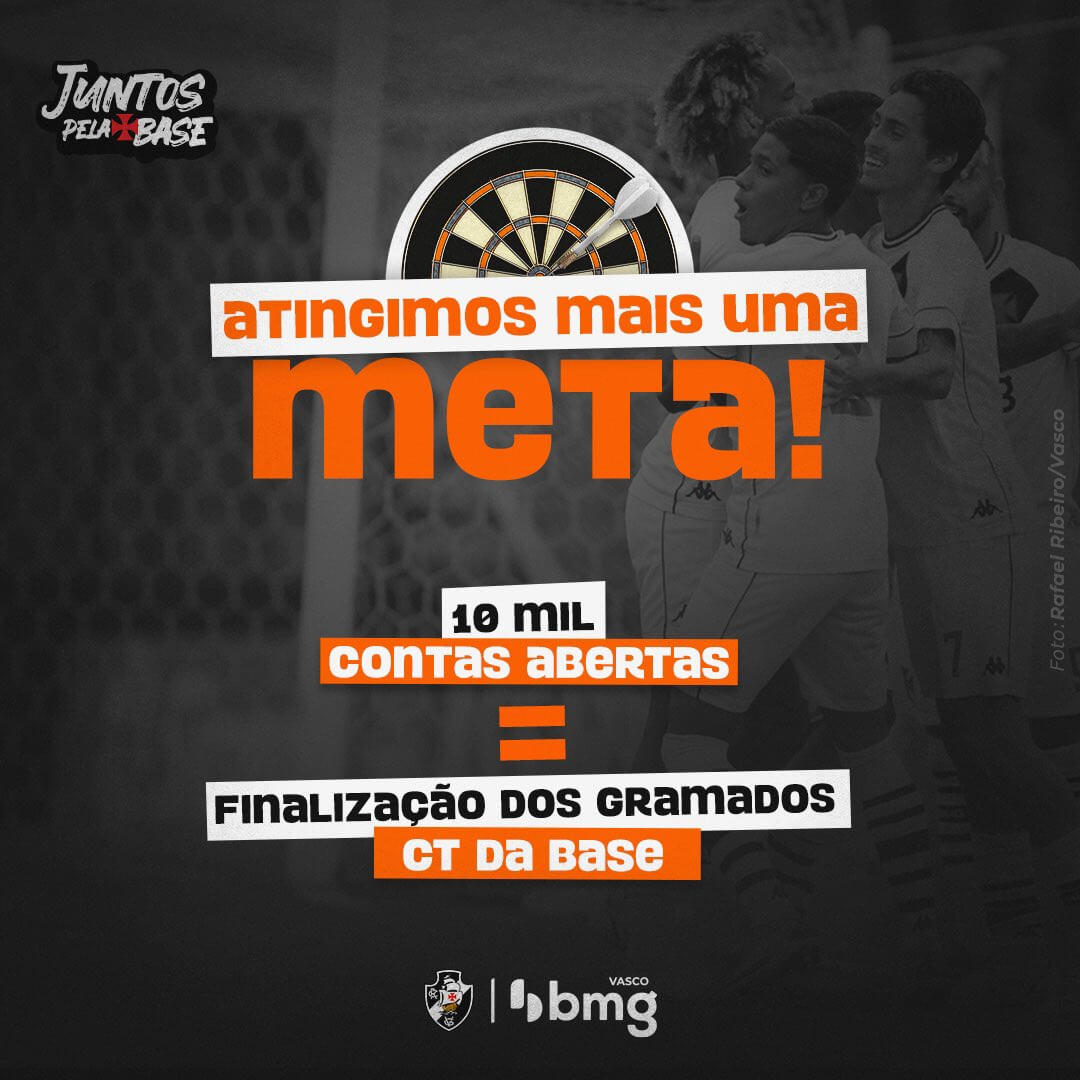 Nesta quarta-feira (17), o Vasco BMG atingiu a meta de 10 mil novas contas e por isso, os campos do CT da base serão finalizados. Em menos de um mês, a torcida aderiu a campanha e já havia batido a meta de 5 mil contas abertas, reformando os vestiários da base.