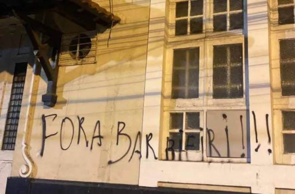 As principais frases pichadas foram “Fora Barbieri” e “Fora Salgado e 777”. Confira abaixo a imagem da pichação.