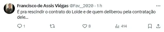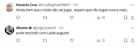 A ausência reacendeu a insatisfação da torcida com a diretoria, principalmente com o presidente Pedrinho, que autorizou a contratação do atacante por cerca de R$ 9 milhões junto ao Alanyaspor, da Turquia. Nas redes, as críticas se intensificaram.