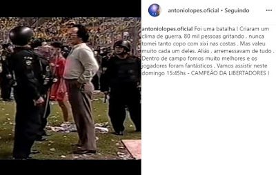 ”Dentro de campo fomos muito melhores e os jogadores foram fantásticos . Vamos assistir neste domingo 15:45hs – CAMPEÃO DA LIBERTADORES!”, publicou.