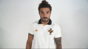 Com detalhes que recordam os azulejos presentes na Colina Histórica, na camisa também está presente o escudo em dourado, homenageando o símbolo na estátua de Vasco da Gama que fica na entrada da social.