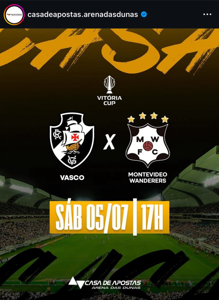 + Arena das Dunas receberá amistoso do Vasco no dia 05 de julho; clube fatura bolada milionária