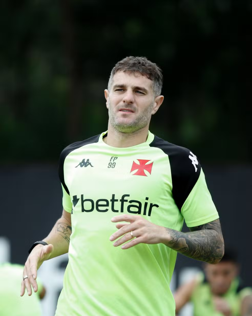 Vegetti em ação no treino do Vasco nesta sexta-feira — Foto: Matheus Lima / CRVG