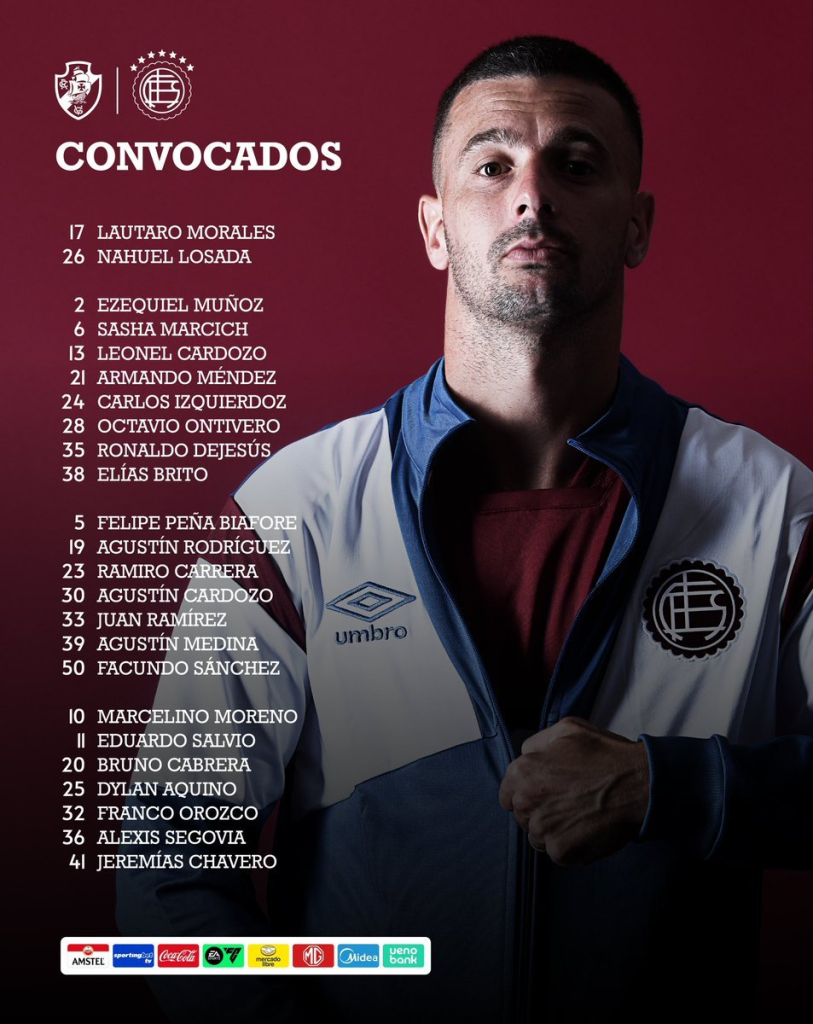 O Vasco recebeu uma boa notícia às vésperas do duelo decisivo contra o Lanús pela terceira rodada da fase de grupos da Copa Sul-Americana. O adversário argentino divulgou a lista de relacionados para a partida desta terça-feira (22), e quatro nomes importantes ficaram de fora: Gonzalo Pérez, Lautaro “Laucha” Acosta, Walter Bou e Alexis Canelo.