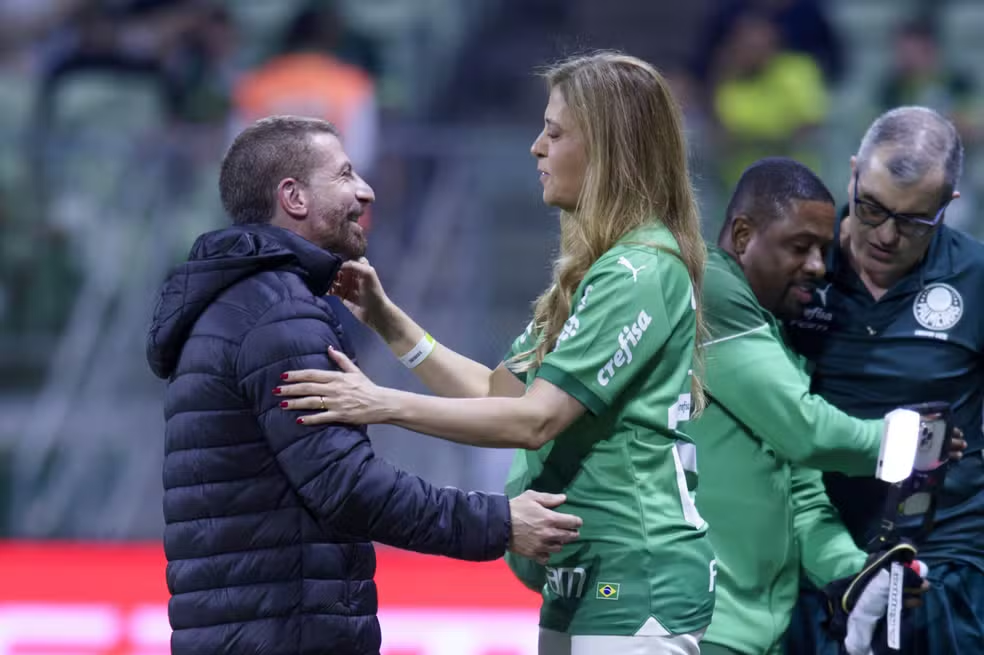 Pedrinho, presidente do Vasco, e Leila Pereira, presidente do Palmeiras — Foto: Anderson Romão/AGIF