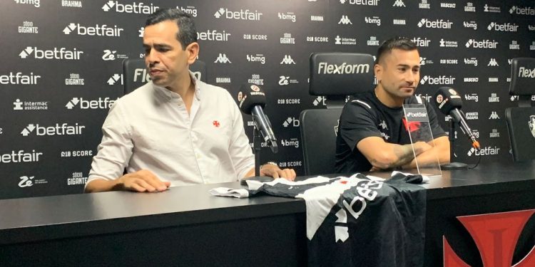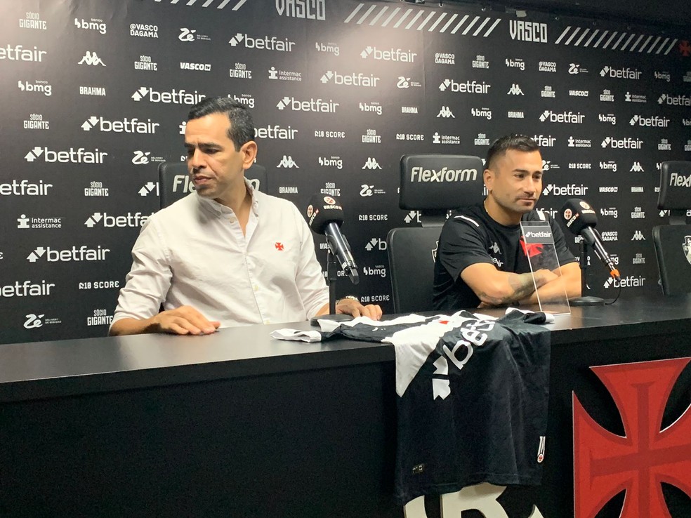 Nesta quarta-feira, o diretor executivo do Vasco da Gama, Marcelo Sant’ana, concedeu entrevista coletiva no CT Moacyr Barbosa, ao lado de Jean Meneses, novo jogador do Cruz-maltino.