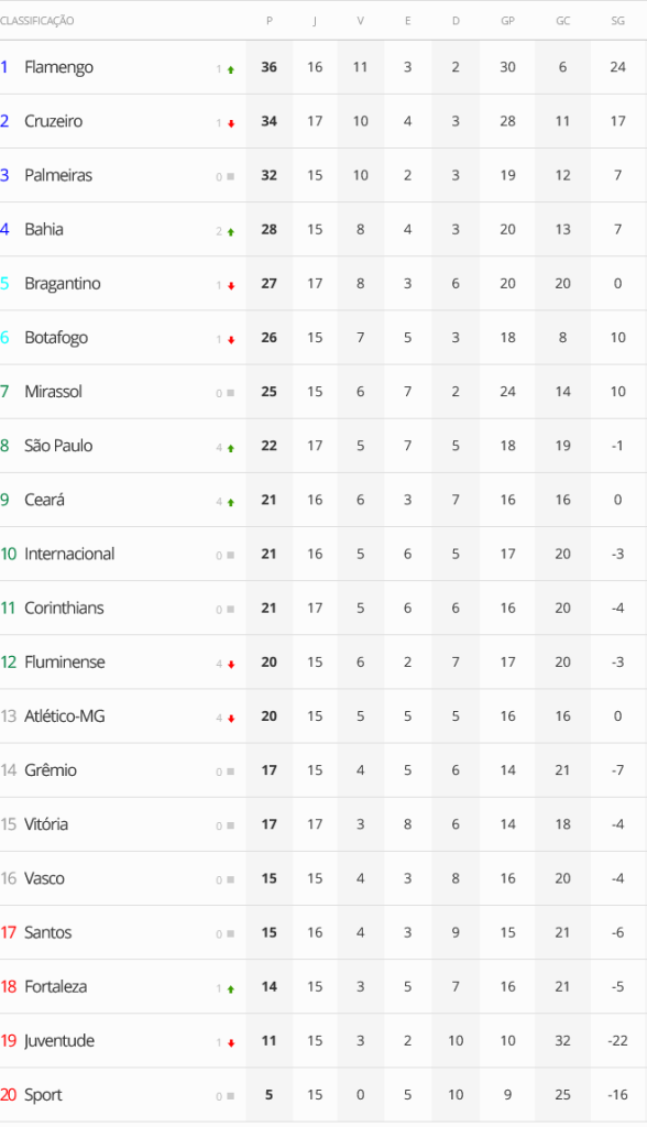 O principal sinal de alerta, contudo, é a pontuação. O Vasco tem exatamente os mesmos 15 pontos do Santos. A equipe paulista, no entanto, ocupa a 17ª posição e é o primeiro time dentro da zona de rebaixamento. O Gigante da Colina só está fora do Z4 por conta dos critérios de desempate. A situação, portanto, é crítica. Não há mais margem para erros nos próximos compromissos do Brasileirão.