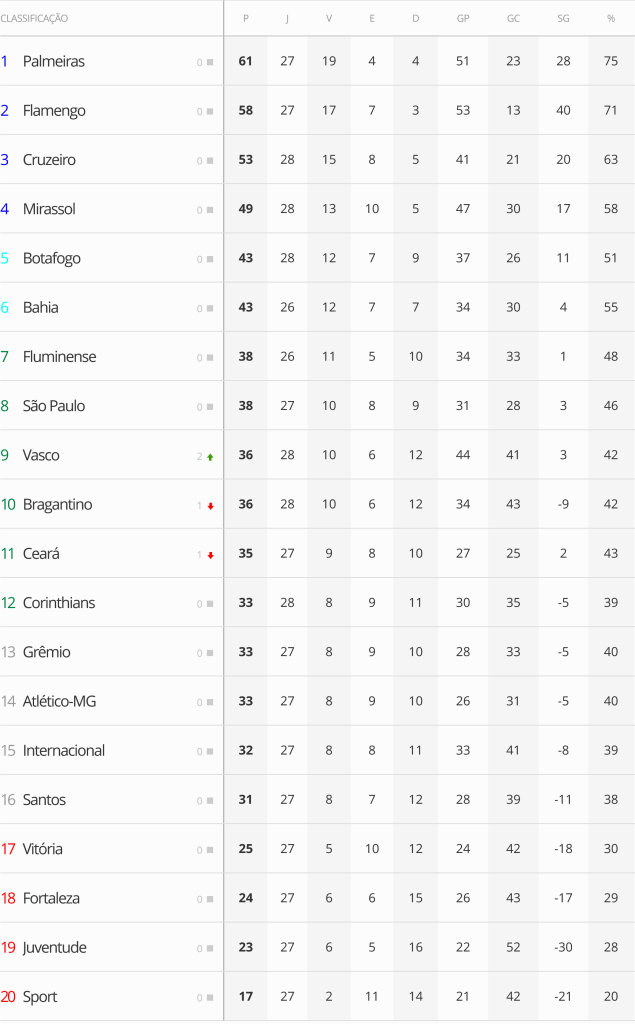 Com os três pontos conquistados no Castelão, o Vasco chegou a 36 pontos, ultrapassando Bragantino e Ceará. O time agora está a apenas dois pontos do Fluminense, que abre a zona de classificação para um possível G8, que daria vaga na pré-Libertadores.